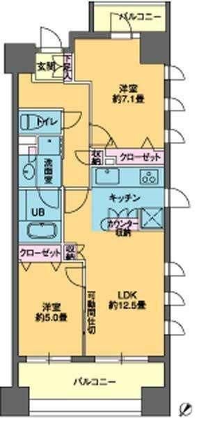 | 築年月 | 2005年5月 | 間取り | 2LDK( 洋室5畳/洋室7.1畳/LDK12.5畳 ) | 専有面積 | 58m2 |