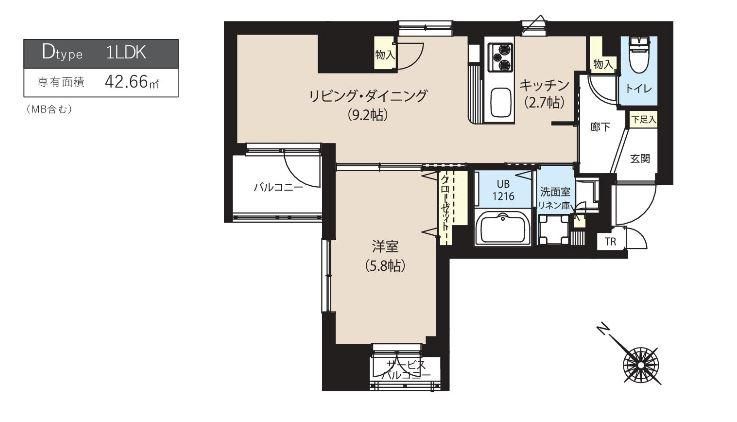 | 築年月 | 2019年11月 | 間取り | 1LDK( 洋室5.8畳/LD9.2畳/K2.7畳 ) | 専有面積 | 42.66m2 |