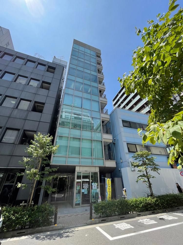 平成26年4月築のオフィスビルです。ビル前は公園が広がっています。